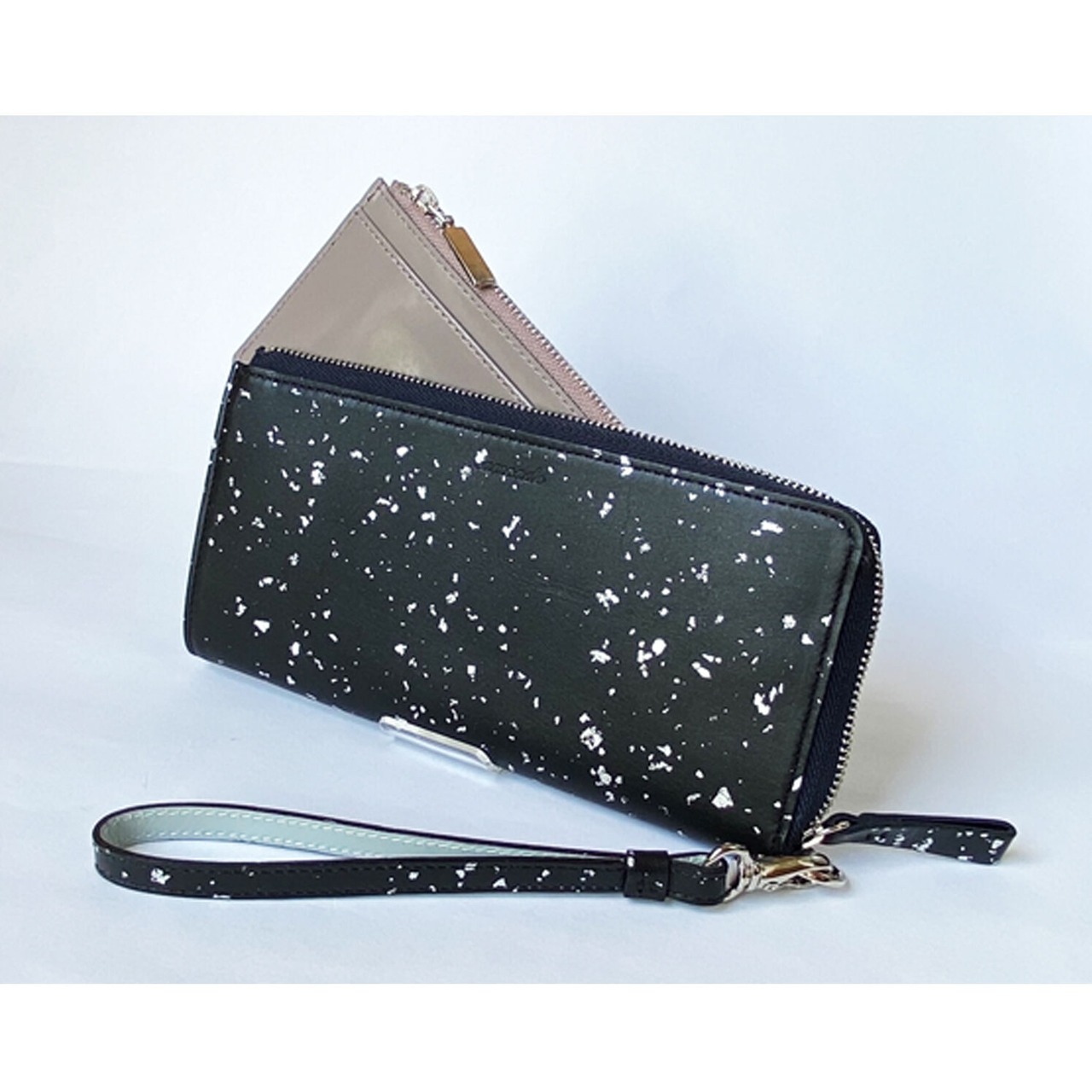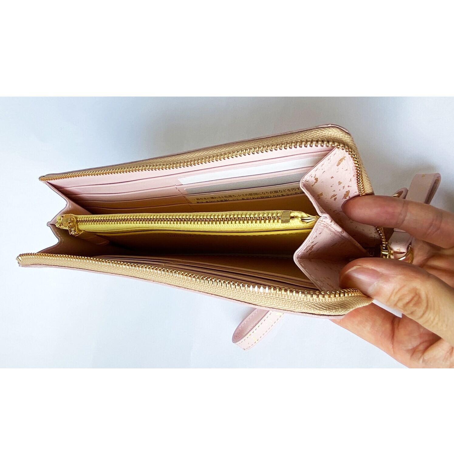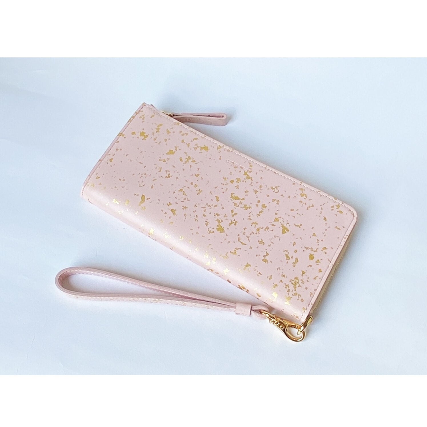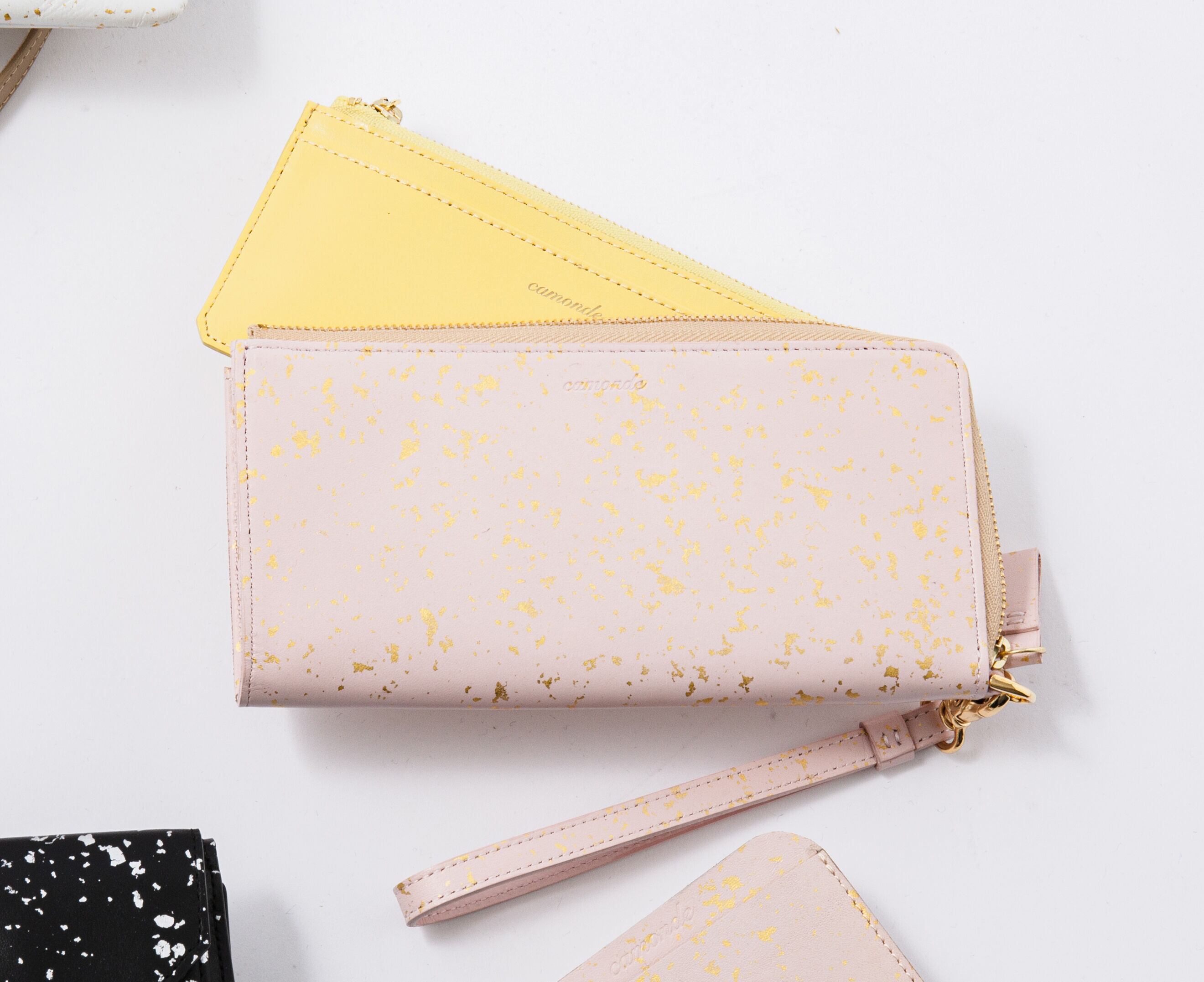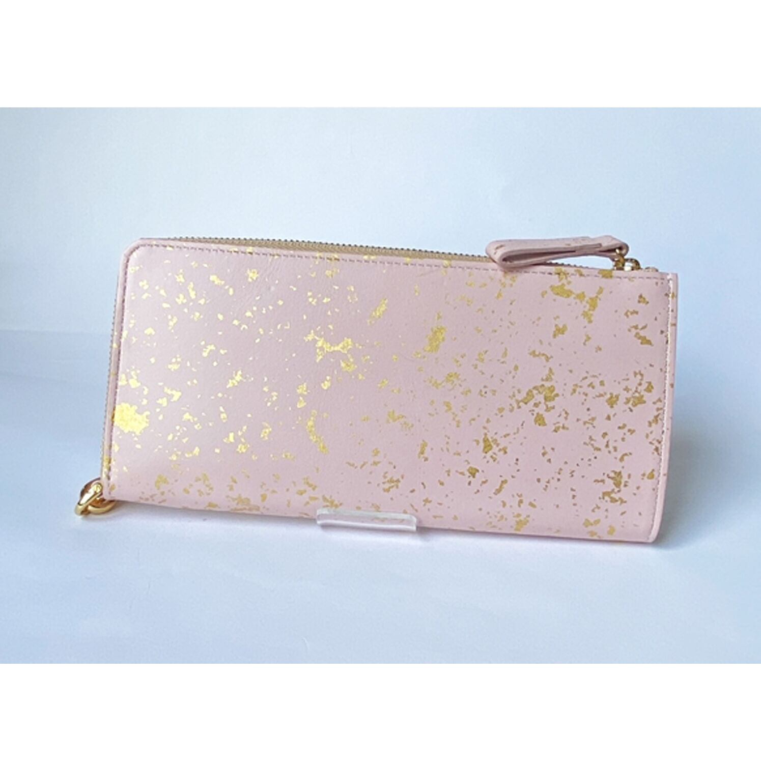 金沢の金箔職人が手作業で本金箔をちりばめた加工が特徴の牛革のLファスナー長財布です。