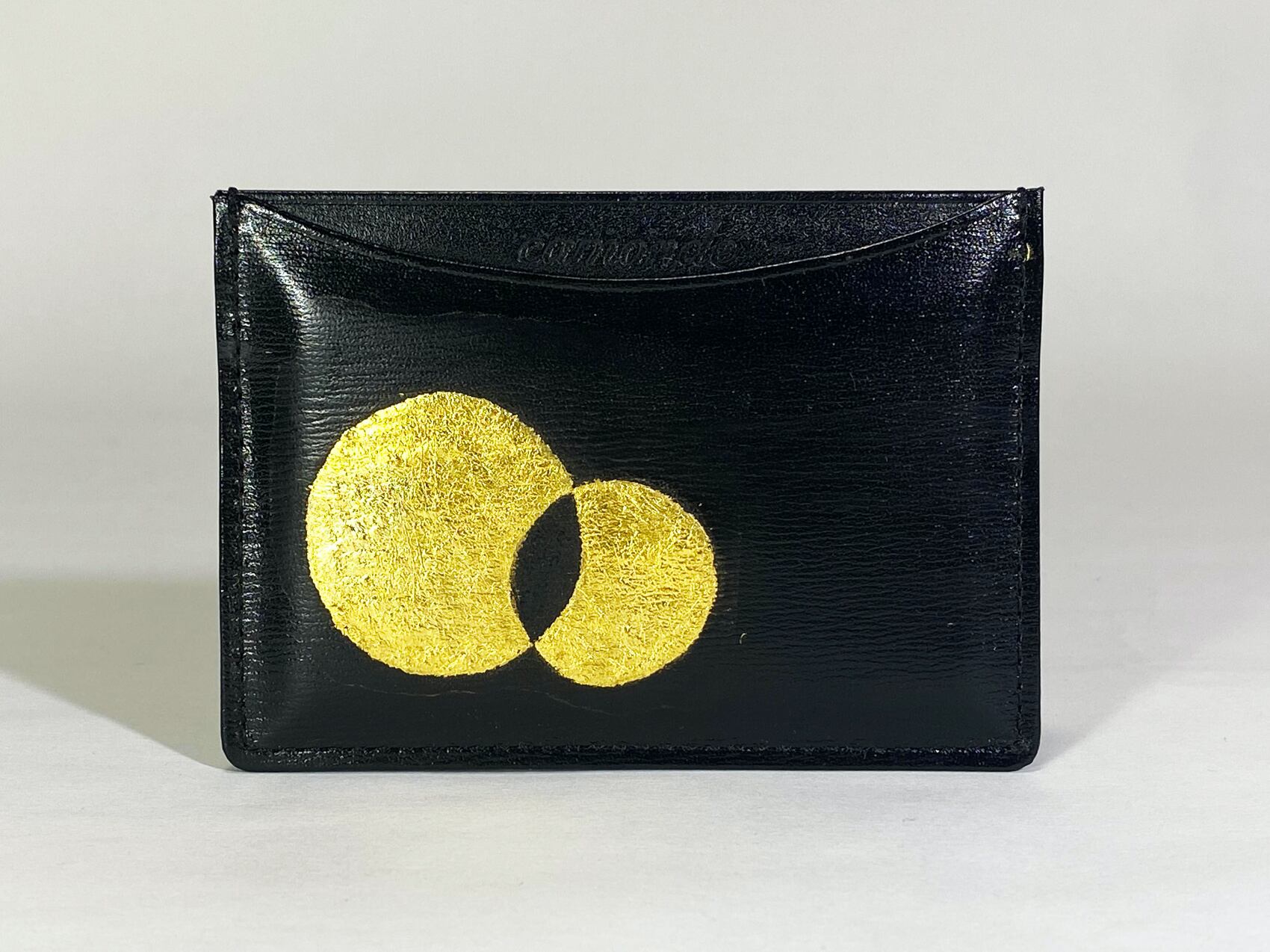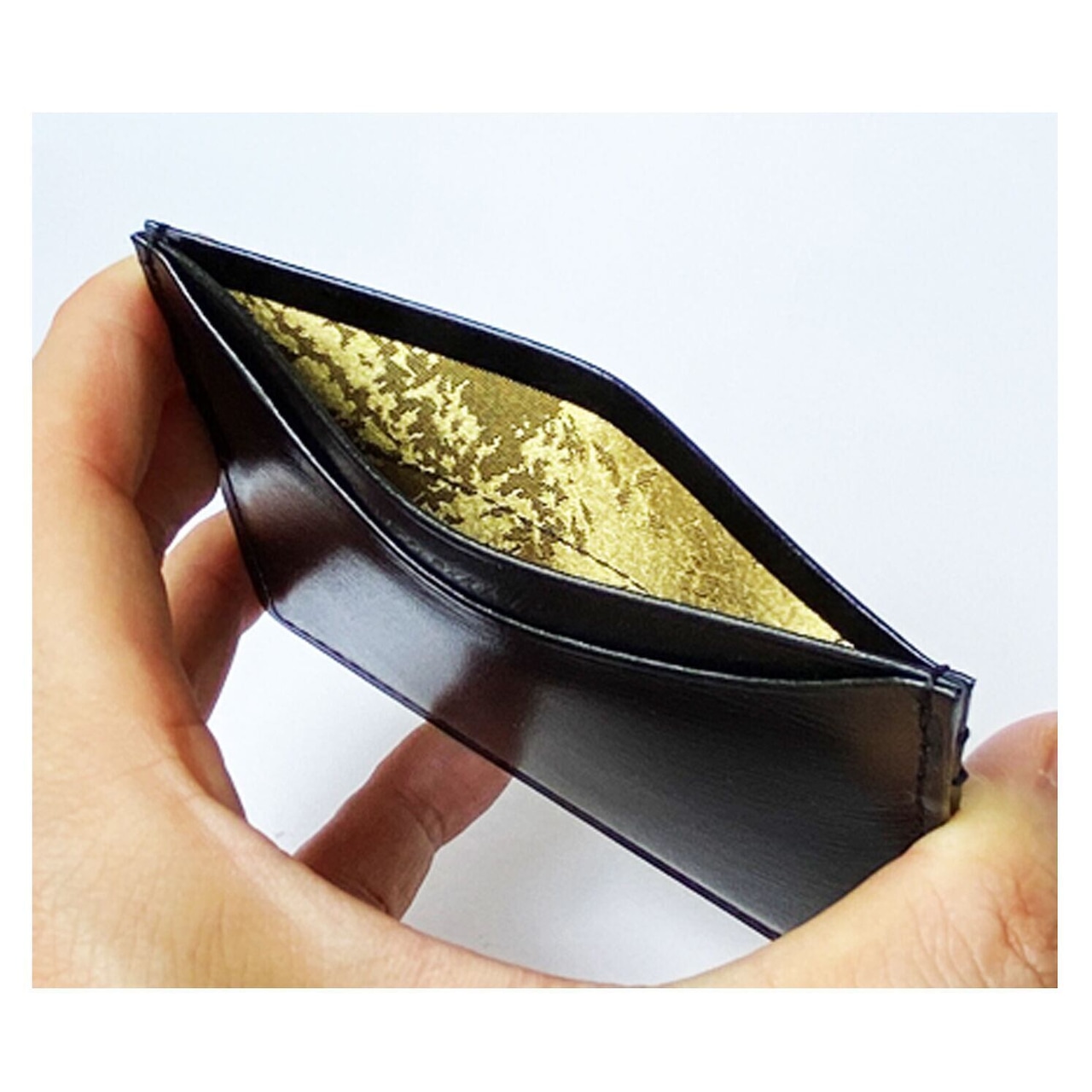 牛革キップレザーに漆工芸職人が金箔加工によって躍動感あふれるアートを表現したカードケースです。