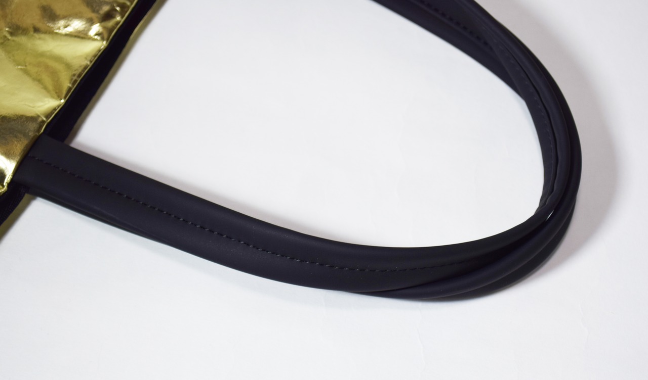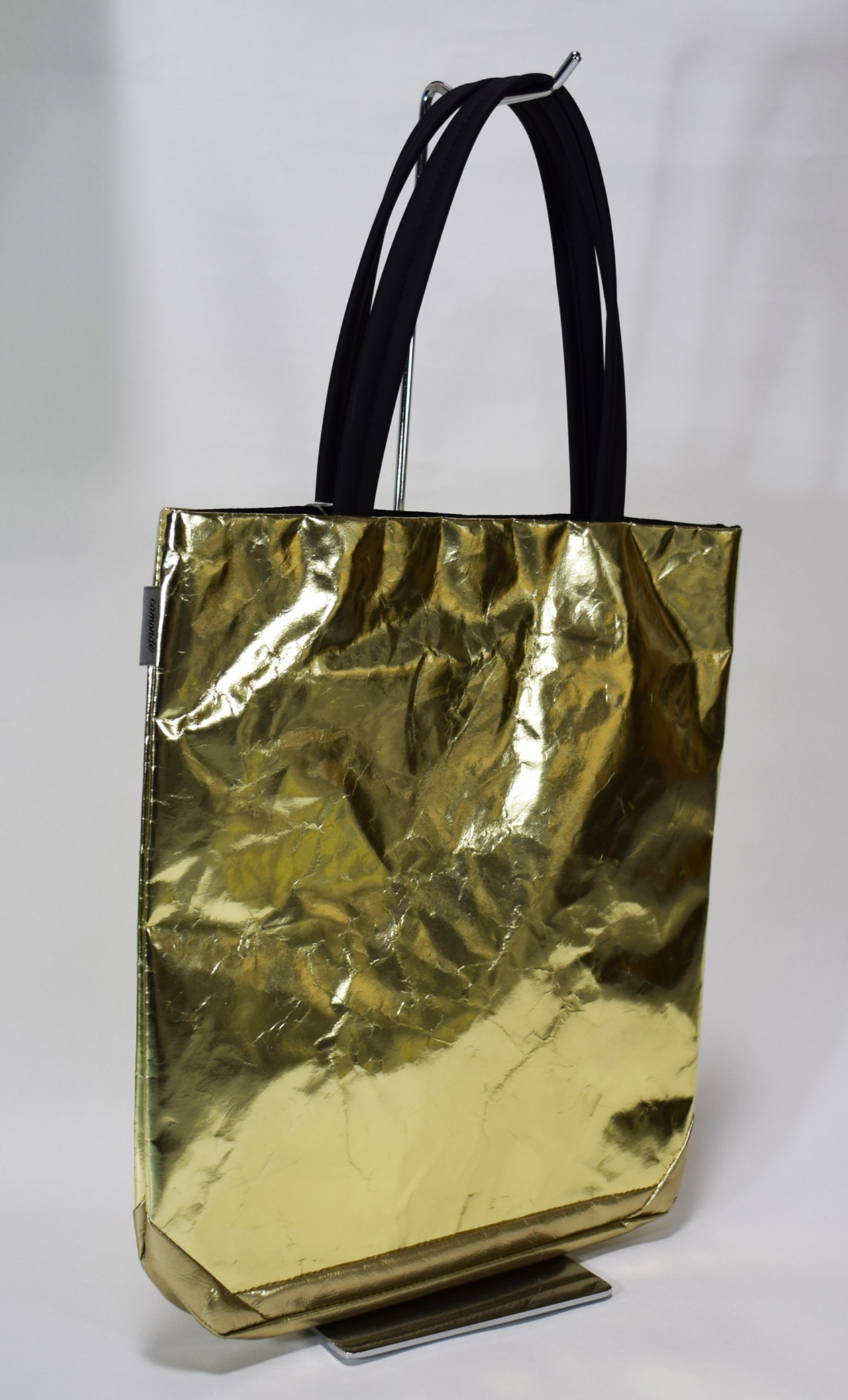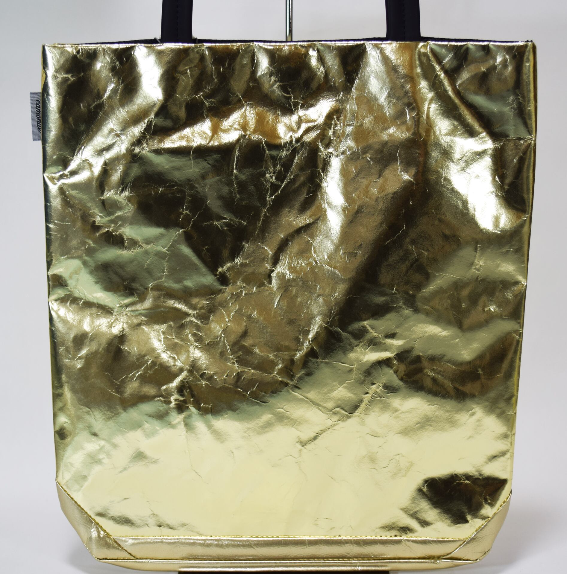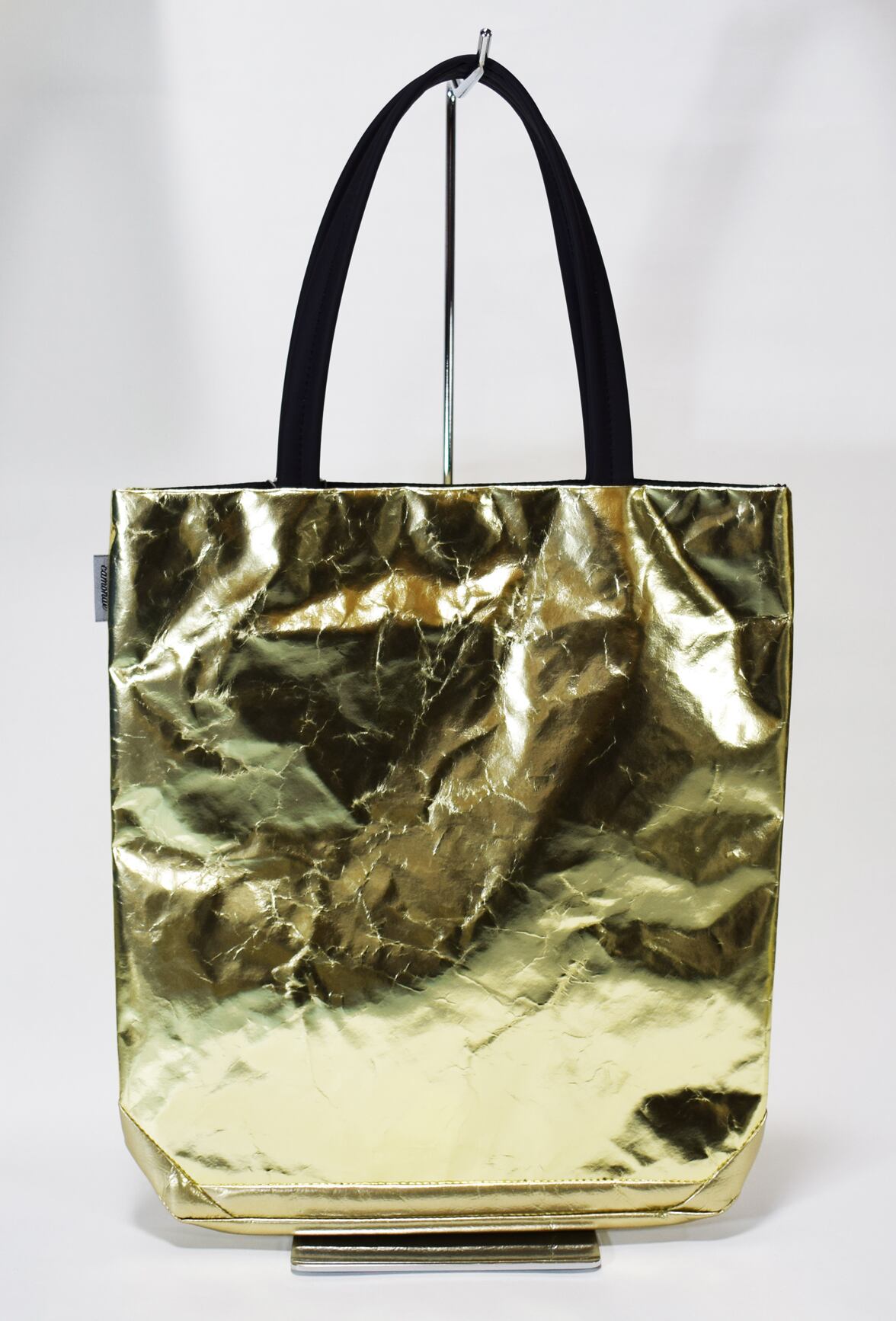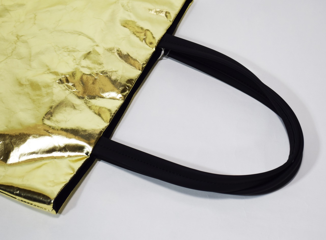 このトートバッグは、日本の伝統的な和紙に箔加工を施して作られました。