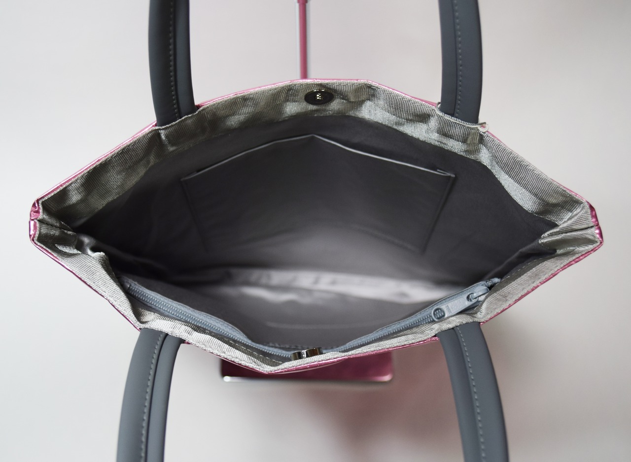 メタリックな光沢感が特徴の、軽くて使いやすいエコトートです。