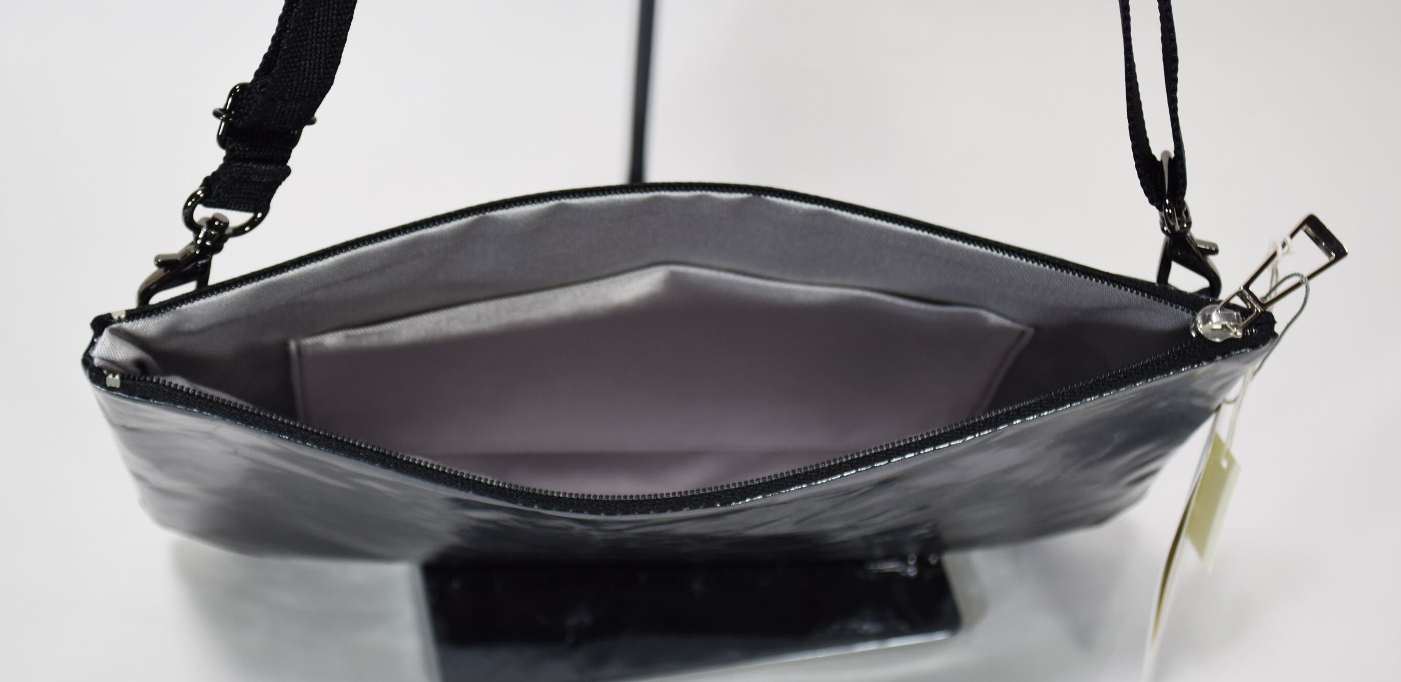内側にはポケットがたくさんあり、スマホや財布、お化粧品など、小物を整理整頓するのに便利です。